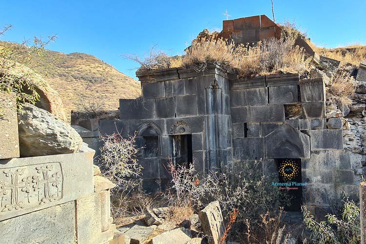 The Aghjots Monastery is hidden deep in the Khosrov Reserve, far from civilization. It stands on a mountainside, from where a beautiful panorama opens up to the reserve.